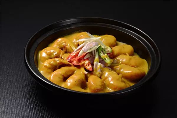 (咖喱粉加适量椰汁、花奶调制而成)
