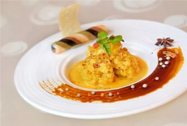 2、锅放油,爆香蒜子和咖喱叶后,放入咖喱酱,出香后再放虾球和花菜,加入三花淡奶煮开,然后加少许盐调味即可;