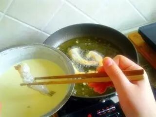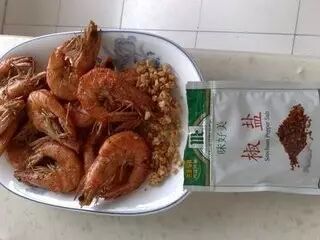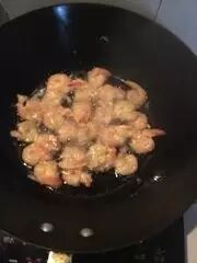 2、烧热一锅油后,将虾放入油锅中炸至8成熟后要很快拿起来,因为虾很快就熟了。