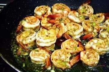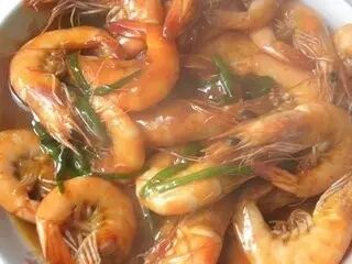 红烧虾,也是保持虾之原始美味的一种家常做法,针对比较小个子的九节虾,或是泥虾,洗干净后沥干水份,直接放入热油中翻炒至熟,依个人喜好放入佐料,最后放葱花装碟——香气四溢,食指大动啊!