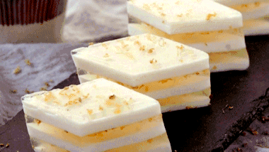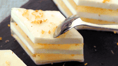 说真的,不怎么吃甜的我,还是第一次那么期待一道甜品。一刀切下,看它DUANG~的瞬间,心情也跟着蹦跶起来,不信你看?