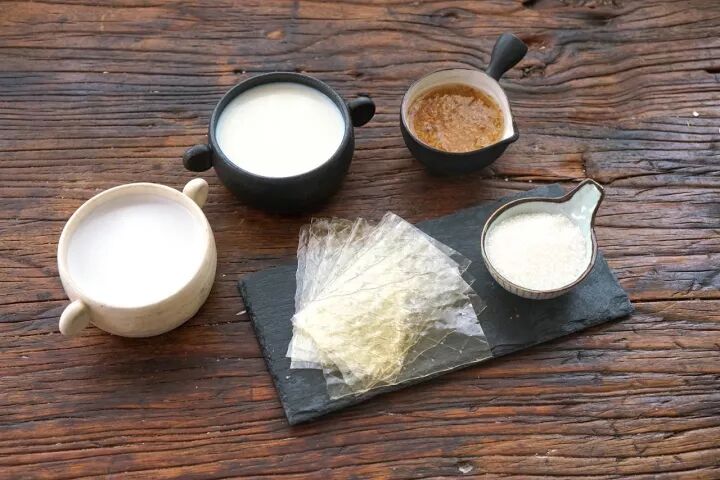 椰浆 / 牛奶 / 糖 / 吉利丁片 / 糖桂花 / 纯净水