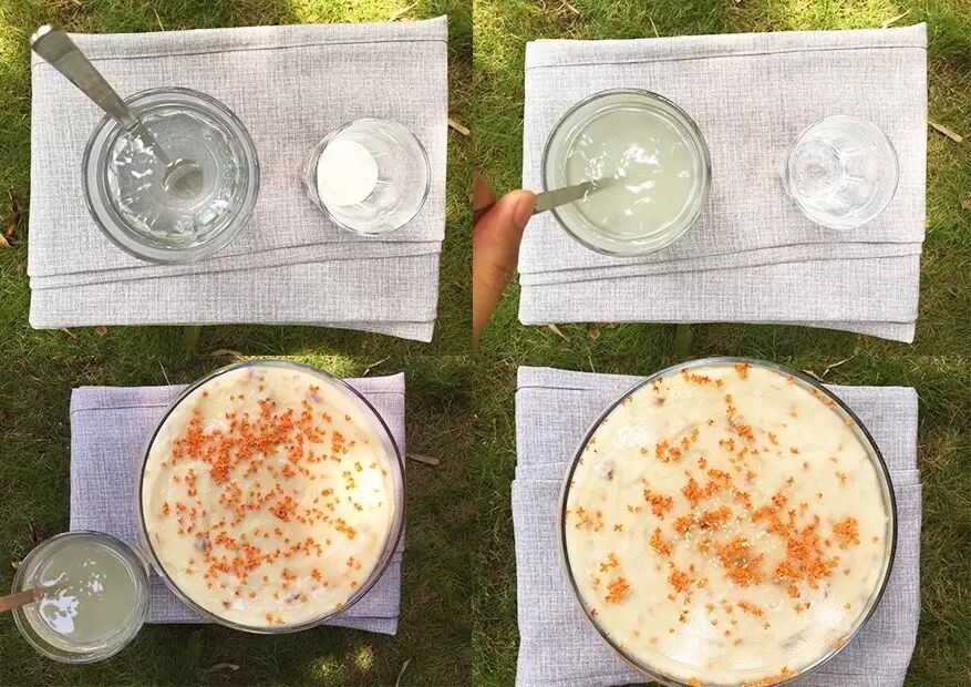 没有糕点用的凝胶,我用四川特产凉糕粉和冰粉粉来代替。