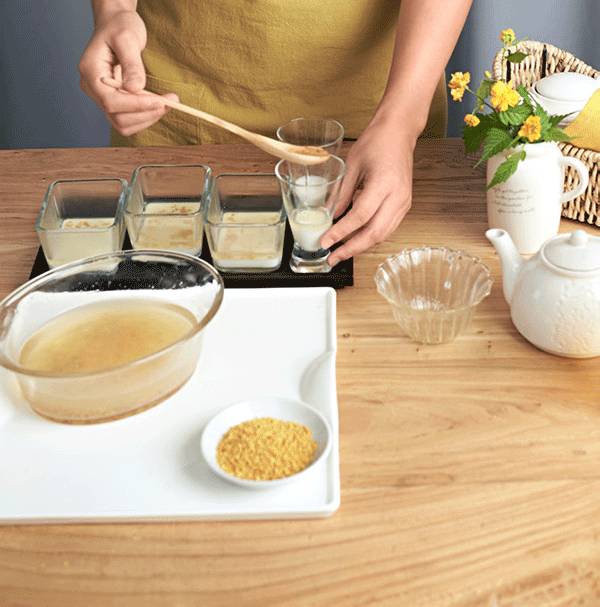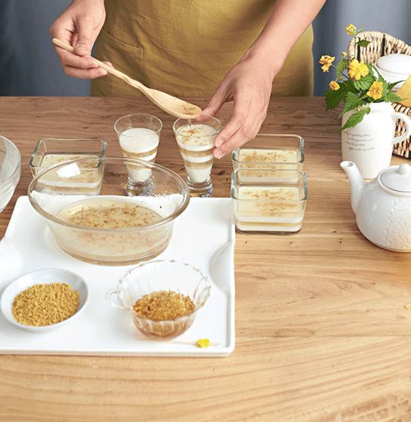 1)注入模具的时候动作轻缓,防止气泡产生,可使用慕斯杯或玻璃杯单个制作更方便。