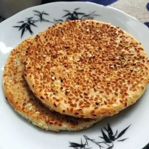 硬邦邦的外壳,铺满了芝麻,一口咬下,满口的甜香味。