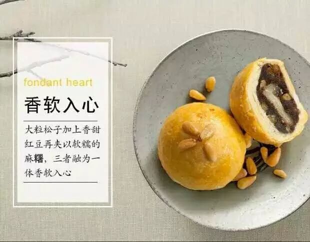 内含有大大的松子,香甜红豆加以软糯的麻薯