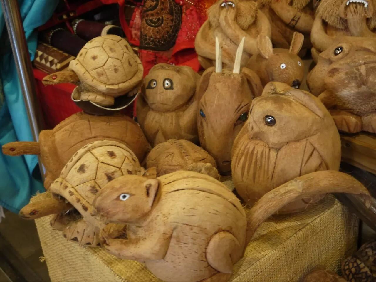 椰壳 质地坚硬,冷热不变形,可制优质高级活性炭,或加工成椰雕、乐器等工艺品。