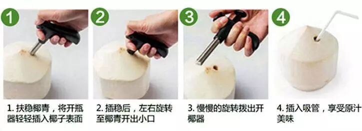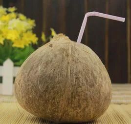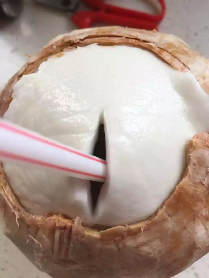 其中一个比较另类的,比其他两个壁薄,用尖头工具捅破椰肉,即可用吸管戳入。