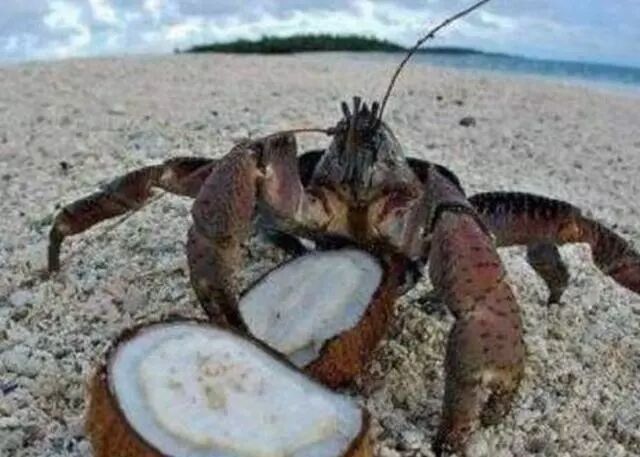 太平洋和印度洋的海岸或海岛上有一种巨型寄居蟹,能长到1米长,它能用强壮的双螯剥开坚硬的椰子壳,以吃其中的椰子果肉而得名。