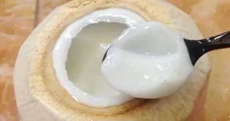 椰肉随着成熟越来越硬,同时香气也越来越浓。老到咬不动了正好适合制作椰子片、椰丝、椰蓉。烘焙食品或甜点中的椰香味大家都很欢迎,有缓解抑郁情绪作用。