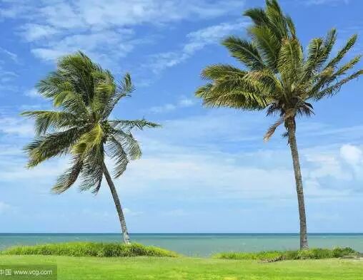 椰子树雌雄异株,点缀在海岸边,构成美丽的景观。海南的椰林为大家所熟知。