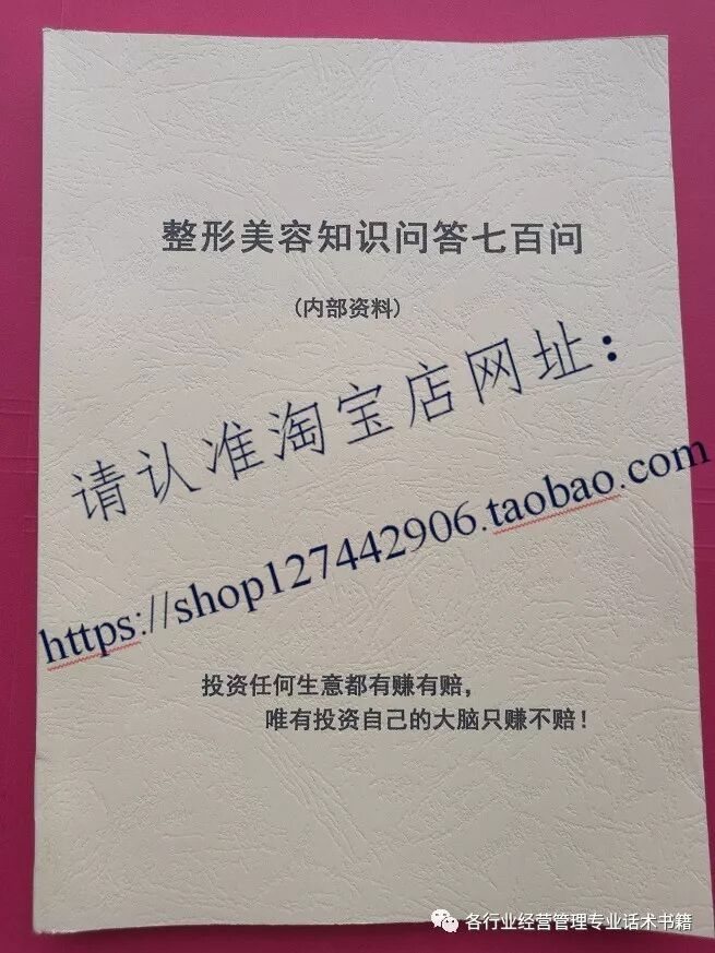 温馨提示:更多美容整形话术书籍和资料请搜索淘宝网址:https://shop127442906.taobao.com 加微信hjh8681