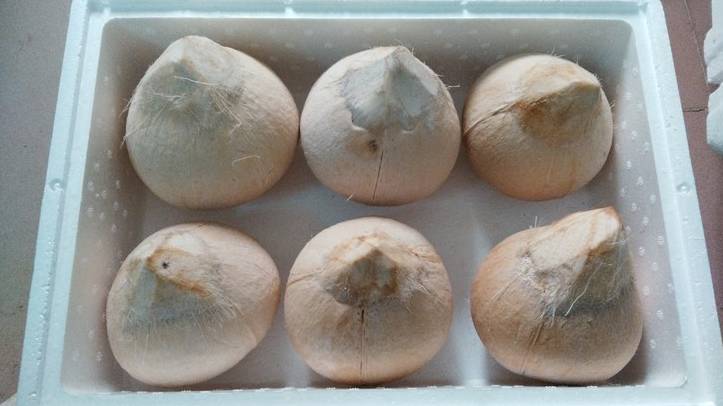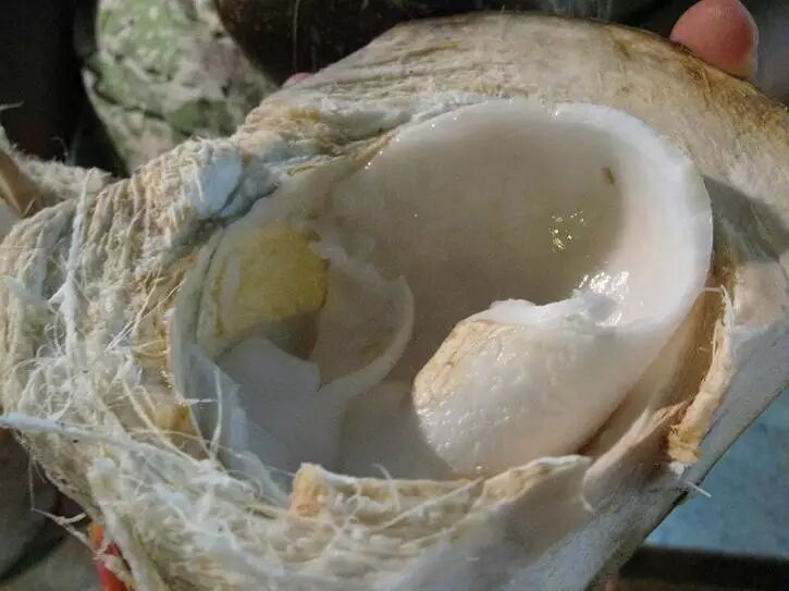 由于椰子的成熟度不同,取椰肉的方式也有所不同。