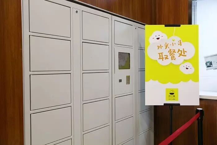 取餐柜后进前出,外卖小哥根据密码自助开柜取货,进一步提高了工作效率,柜内恒温系统可以让餐品数小时的温差保持在5摄氏度以内。