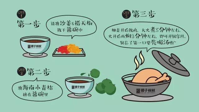 椰子叔叔提醒您先喝汤后吃肉哦,沙姜、小青柠、指天椒搭配椰子叔叔熬制3小时的秘制酱油品尝鸡肉和涮菜味道棒棒的哦!