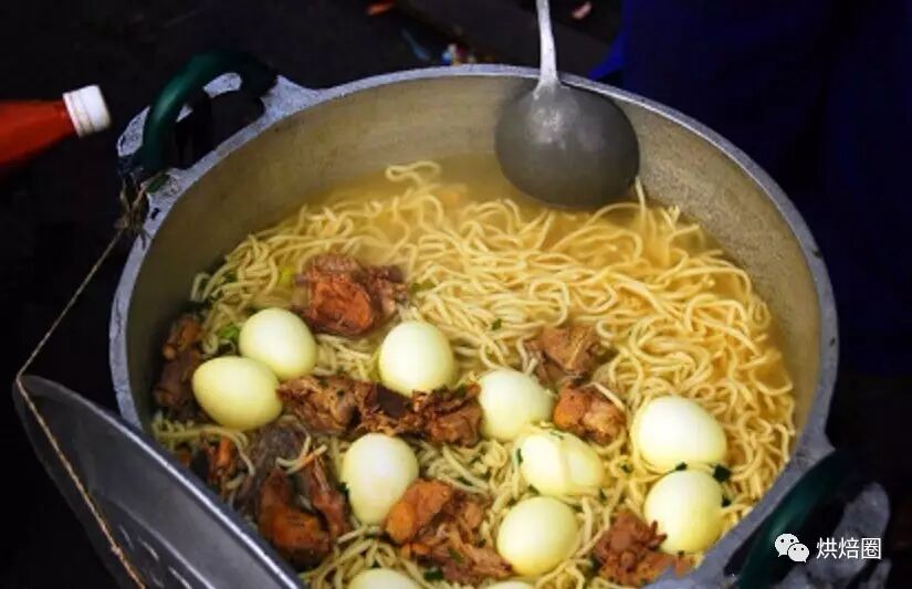 图为一个非洲年轻人卖的鸡蛋排骨面,看起来料还很足。