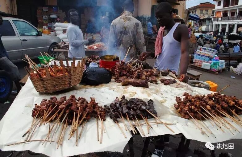 图为加纳街头某处烤香蕉,这东西是当地人的最爱,只要能烤他们都不会直接吃香蕉。