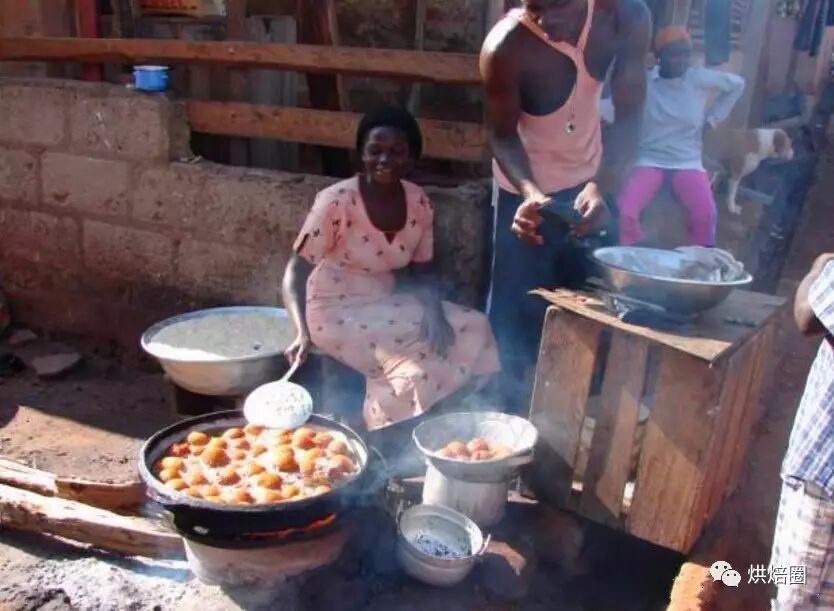 图为加纳街头的炸面团摊子,这家的卫生状况就不咋地了,不过这是在一个小镇上的,可能因为没多少外国人所以也不咋讲究。