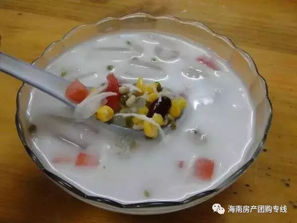 接下来要推荐的就是众望所归的清补凉啦。清补凉是风靡海南岛的特色冰爽甜品,可以说它是海南甜品之王。海南清补凉主要是以红豆(绿豆)、薏米、花生、空心粉、椰肉、红枣、西瓜粒、菠萝粒、芋头、冬瓜薏、鹌鹑蛋、凉粉、椰奶等多种配料炮制而成的冰爽又解渴的小吃。夏日的夜晚,海南清补凉是岛上一道很独特的风景线。