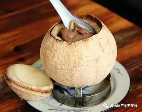 海南椰子盅为海南风味小吃,椰子原肉造型,汤鲜味美,椰香浓郁,营养丰富。可以说,海南椰子盅是到海南不得不吃的美食之一。据介绍,做汤底的椰子要求也很非常高,椰子全是新鲜的,大小也是整整齐齐的,不能太大,也不能太小,太大椰子汤不入味,太小椰子量太少,真是用料非常的讲究。