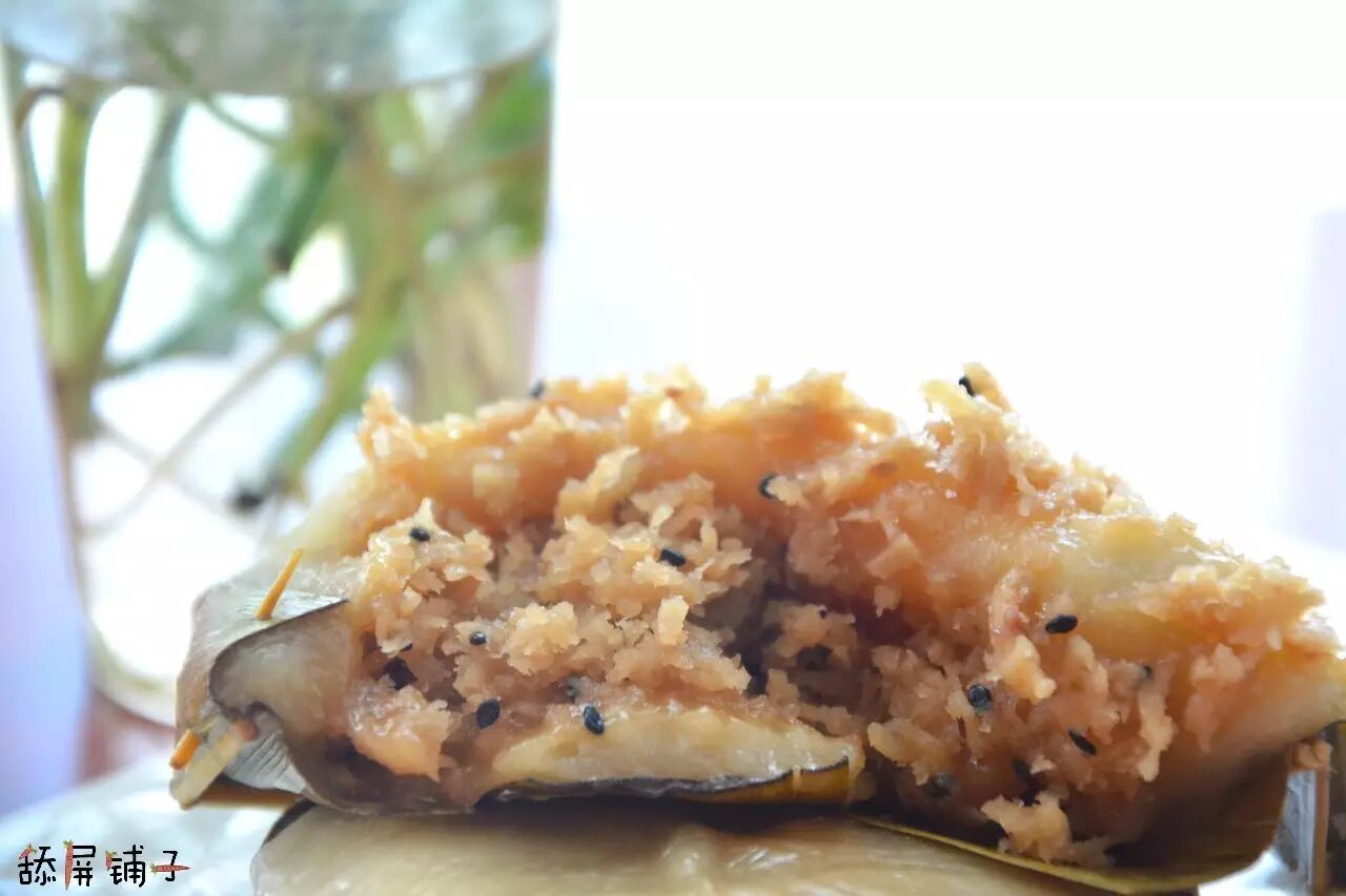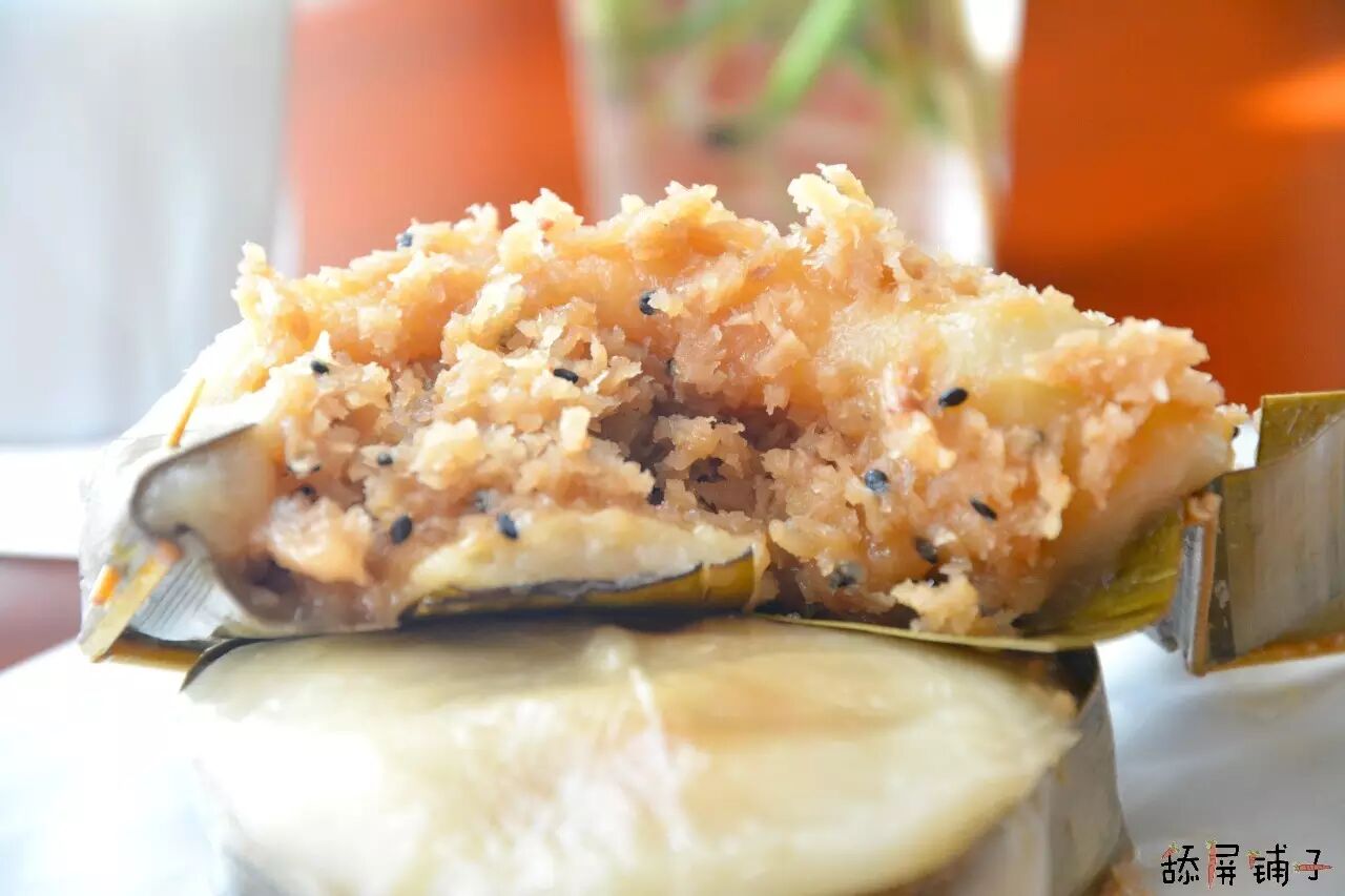 包着椰子糕的是芭蕉叶,解开芭蕉叶,椰子糕Q弹软白的身躯就会全部露出来,很是诱人,咬一口,噗嗤,脆口的椰子丝就露了出来,偶尔还会流出浓郁椰香的甜酱汁,这口感,小心别把舌头吞了哟~~