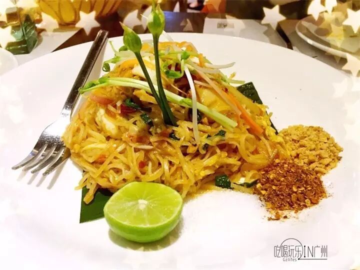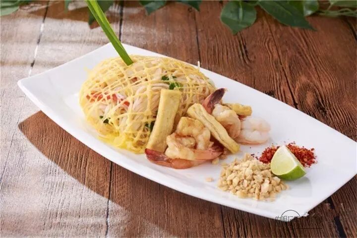 泰式炒金边粉味道真的很好,酸酸甜甜的味道,样子和河粉差不多,就是比较细,口感很好,配菜数量多,配料选择也多!