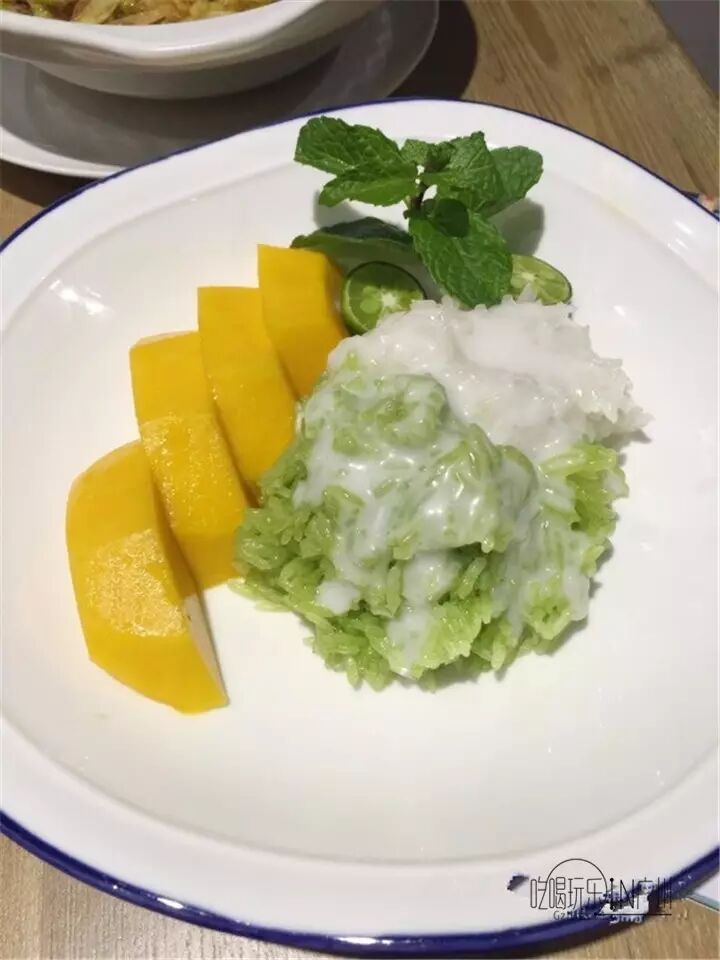 芒果糯米饭的芒果很甜,糯米饭也偏甜,椰汁味很浓,吃起来很香,是喜欢吃甜品的人的福利!