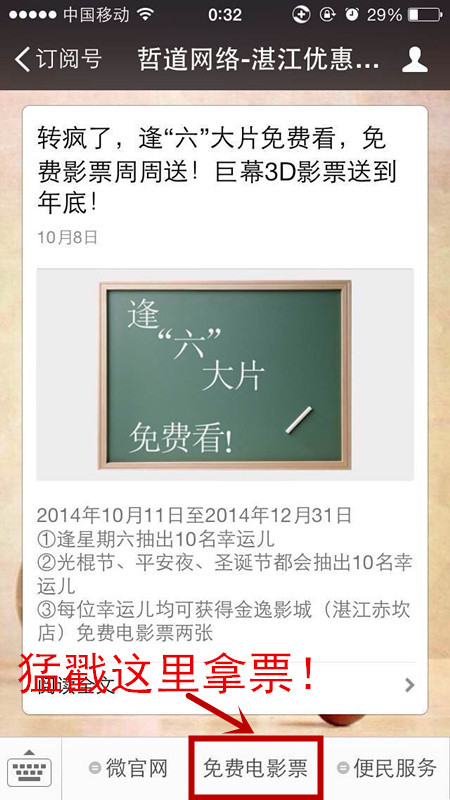 ②只需要关注【湛江优惠俱乐部】后转发活动文章到朋友圈回复联系方式给我们即有机会拿免费电影票!
