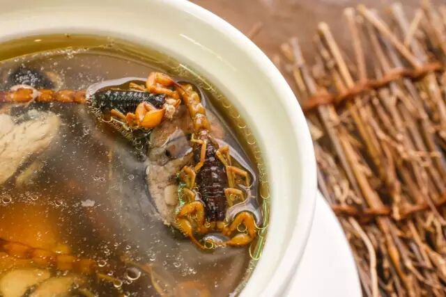 虽然蝎子有毒,经过放尿煮熟后就可以安心食用啦!放到炖汤中还可以起到攻毒散结、祛风散湿的作用!