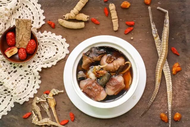 食材十足,简直是炖汤中的豪华阵容!海龙、海马、牛鞭、海螺头、鸡子,各位汉子不妨尝试一下!