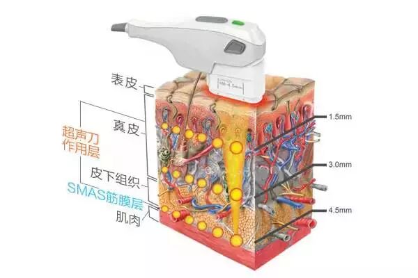 是以高强度聚焦式超音波(HIFU),将超声波聚焦于单一个点,以产生高能量,作用在筋膜层(SMAS),让SMAS层产生收缩,进而产生拉提的效果。