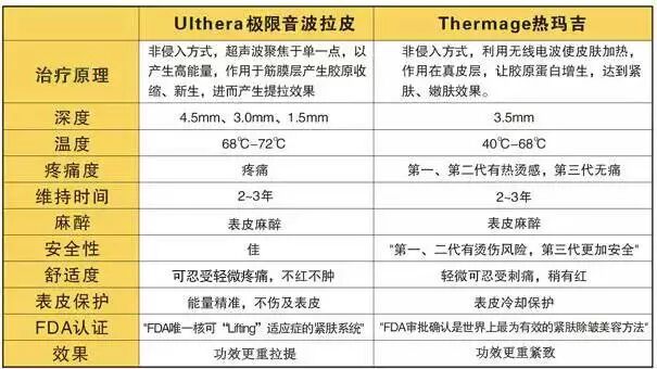 国外网站有提到,进行过Ulthera的患者满意度,比Thermage高。不过,这可能由于Ulthera直接加热于SMAS,造成SMAS收缩‘Q’起来,瞬间的拉提效果理论上应该是更直接,所以患者很容易立刻看到效果,而Thermage则只作用到脂肪层上方的纤维中隔,虽也有收缩的效果,但毕竟不是肌肉组织,立即性的拉提没有那么明显。