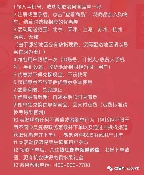 钱小潮要特别跟亲们说明的是:本次活动由于运输仓储等原因,浙江地区暂时仅支持杭州、宁波的易果生鲜新用户参与配送。抢到水果礼券的亲,也请按照“活动规则”填写您的收货地址。