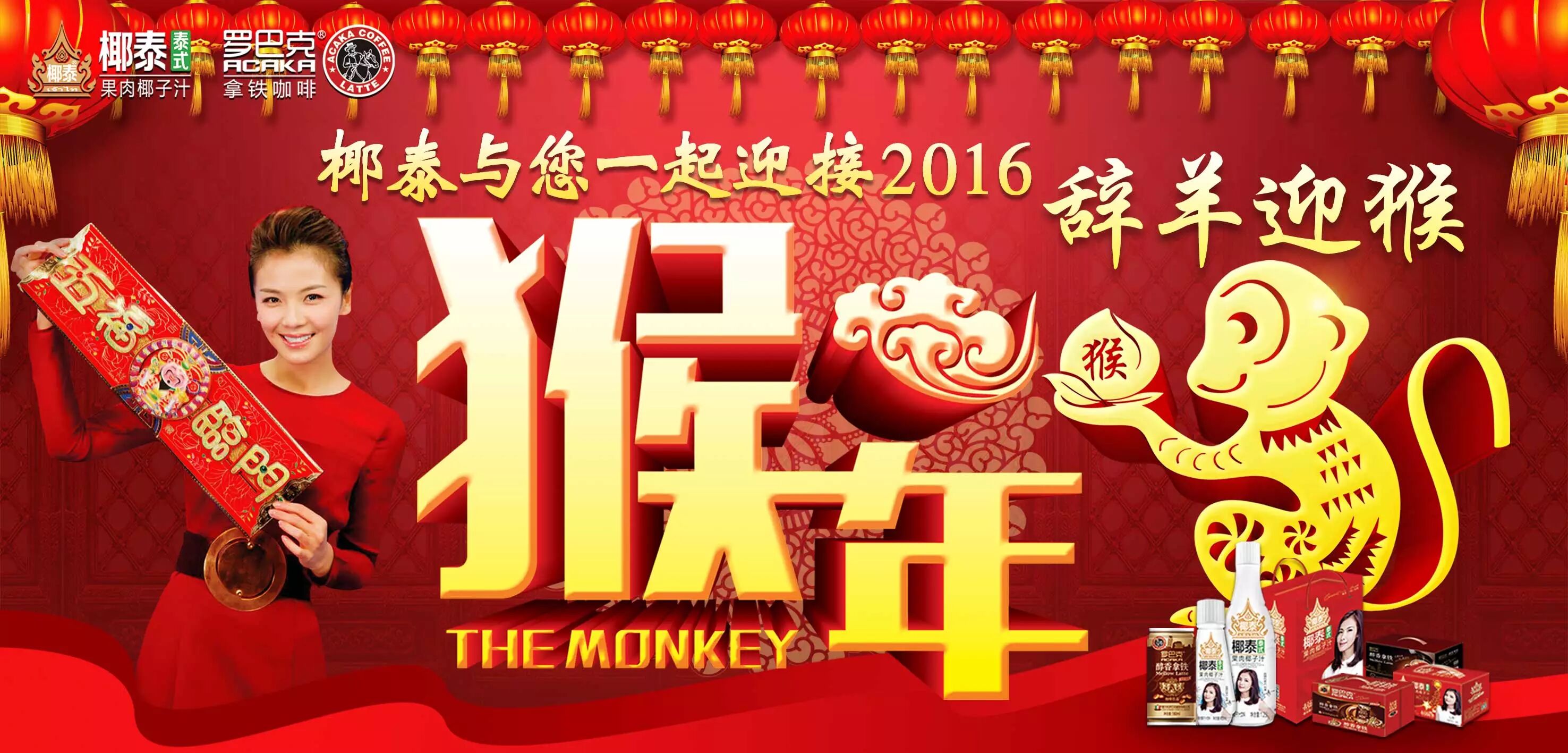 椰泰椰汁恭祝您:猴年大吉大利,身体健康!家庭幸福美满!财源滚滚来!