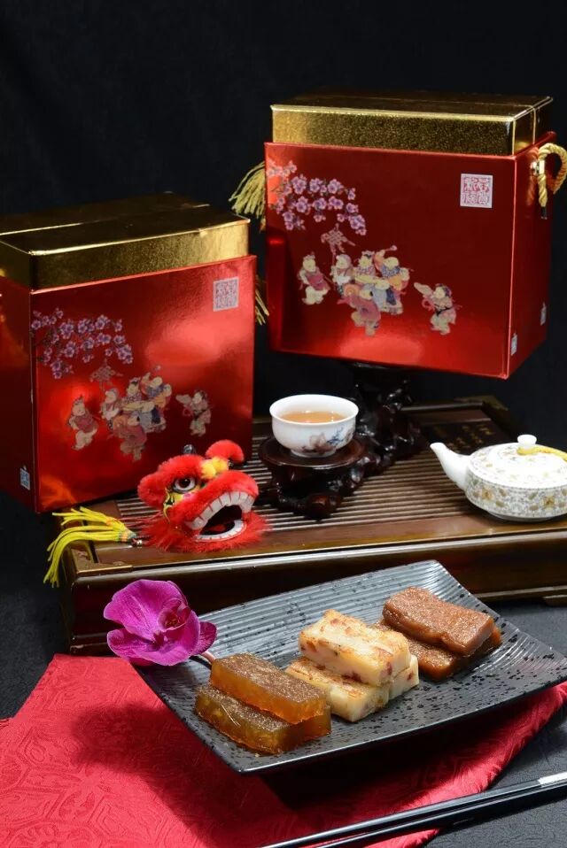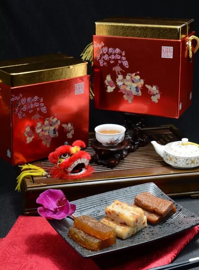 马蹄糕是将马蹄(荸荠)磨成浆或干马蹄粉兑水加糖蒸制而成。而萝卜糕,则是在粘米浆中加入腌制好的萝卜丝等材料蒸制而成,花园酒店的萝卜糕选用百年老字号皇上皇出品的腊肉,色泽鲜明、美味可口。除了传统年糕,我们更推出了创新的椰汁年糕,带来不一样的口味。
