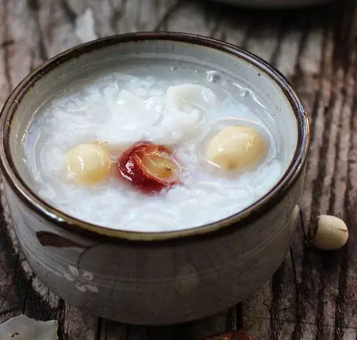 主料:大米(50克)、莲子(10克)、百合(10克)、山楂干(10克)、冰糖(20克)
