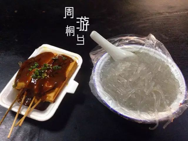 丝粉汤料很足,口感也正好,豆腐干上撒着葱花,抹着桐乡特有的甜酱,一口豆腐干,一口丝粉汤,虽说天气炎热,但吃着热腾腾的丝粉汤,头顶还有吊扇呼呼地吹着,却也觉着惬意。