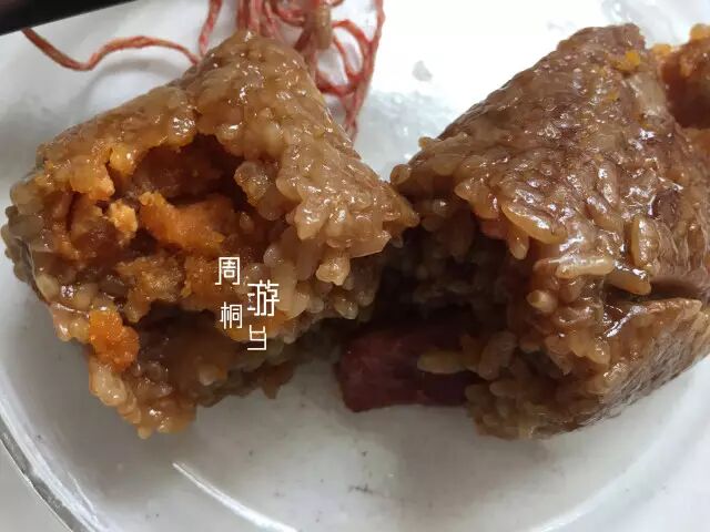 周游君吃过他家的蛋黄肉粽,煮热,解开红白相间的“腰带”,除了藏在内部的馅料,粽子外身也有两三片薄薄的肥肉片,一口咬上去,细腻的蛋黄、鲜嫩的猪肉、淡淡的粽叶香……哇塞,好吃到飞起啊!