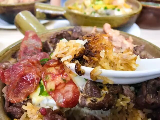 腊肠简直就是为煲仔饭而生的,平常我真的对腊肠无感,除非吃腊味煲仔饭。吃起来肥而不腻。