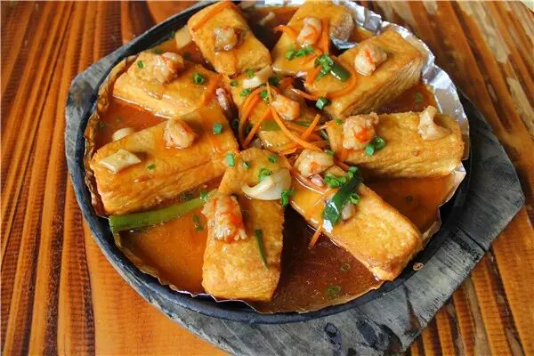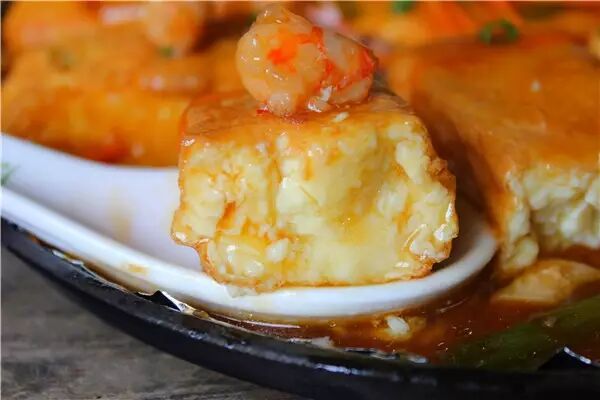 铁板海鲜豆腐 爽滑好味道 28元/份 老板嘅得意之作,好吃唔贵,强力推荐!豆腐预先用黄豆浸过,然后加入鸡蛋去清蒸,仲有好多鲜鱿鲜虾,怪唔得灵舍滑,口感特别正啦!