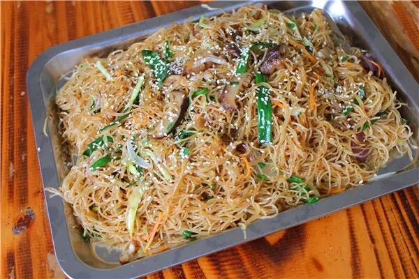 唔使睇咩,见到15蚊有咁大煲就知实唔会蚀底啦!!里边超多鸡杂鸡血,粥浓稠好喝,6-8个人可能未必吃的晒~(信心推荐,唔正你来劈我~~(●'◡'●)) 五花肉、冬菇、洋葱炒米粉,配猪杂粥吃简直一流!!!