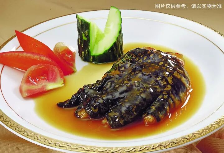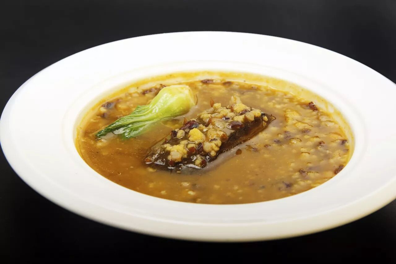 辽参使用24小时高汤煨制,配以杂粮小米文火炖制。辽参肉质软嫩,入口Q弹香滑,是典型的胶原蛋白、低脂肪食物,是久负盛名的名馔佳肴。