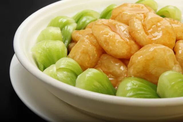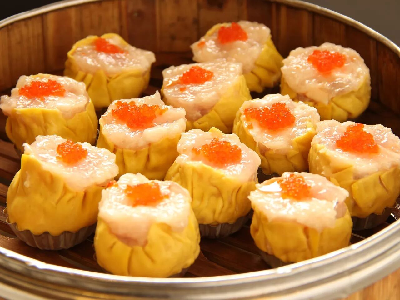 烧卖皮薄馅大,烧卖皇的内陷是Q弹饱满的手打猪肉泥,再搭配上橘红色一粒粒晶莹剔透的蟹籽。脆脆的在舌尖上爆裂化成汁水,引爆味蕾的独特口感让人根本停不下来。