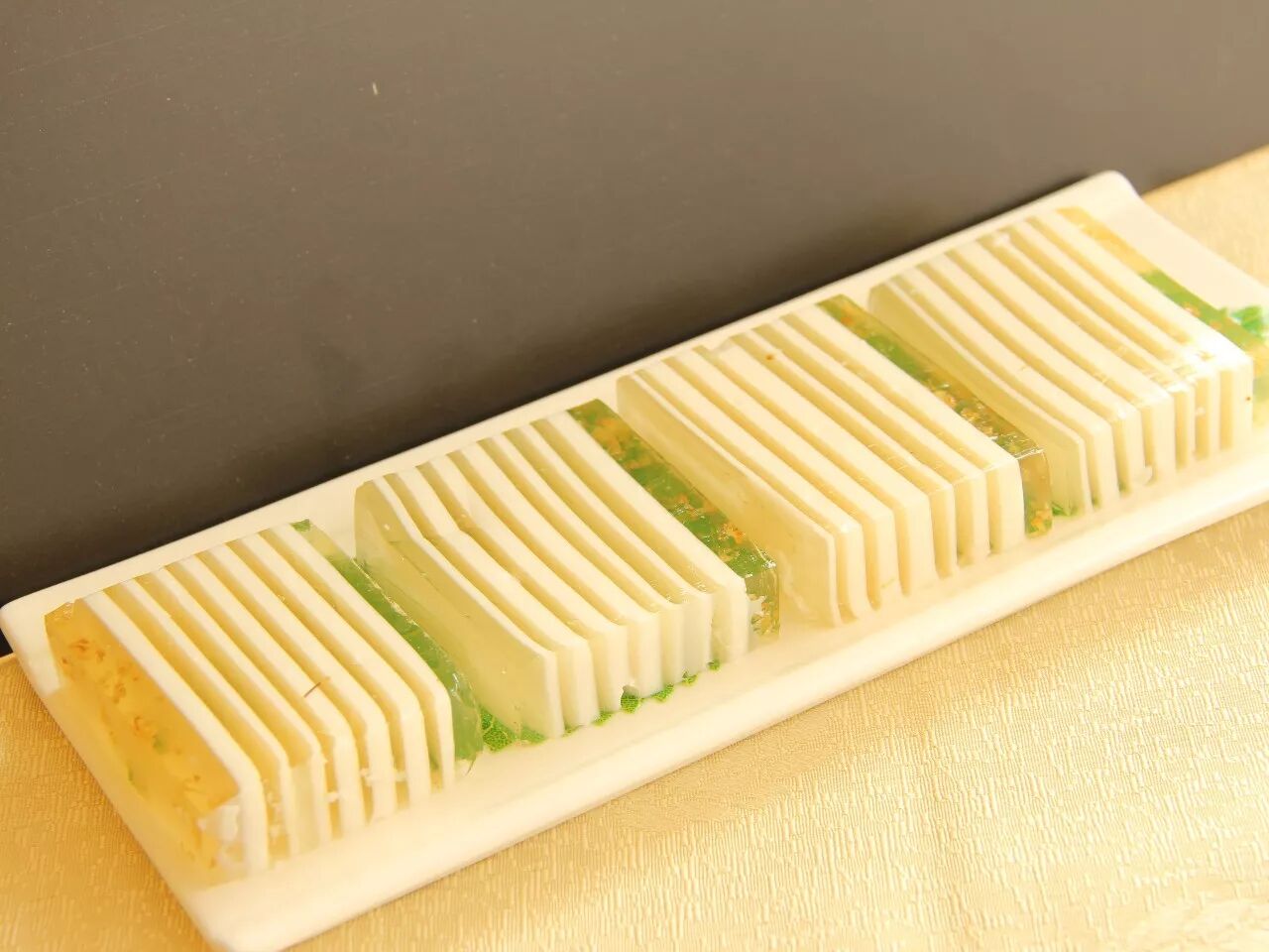 雍富特别出品的桂花糕,还没吃就已经流口水了。尝一口,口感“烟烟韧韧”,夹杂淡淡的桂花香,吃了一个还想再来一个!