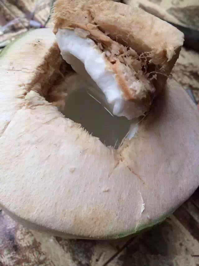 先用小刀在椰子上划出要开的口子大小,用小刀、小锤子等工具打开椰子壳;