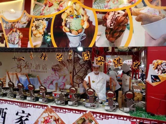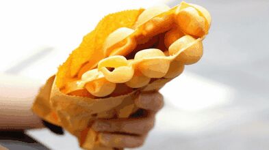 .新鲜出炉概鸡蛋仔加爽滑的冰激凌