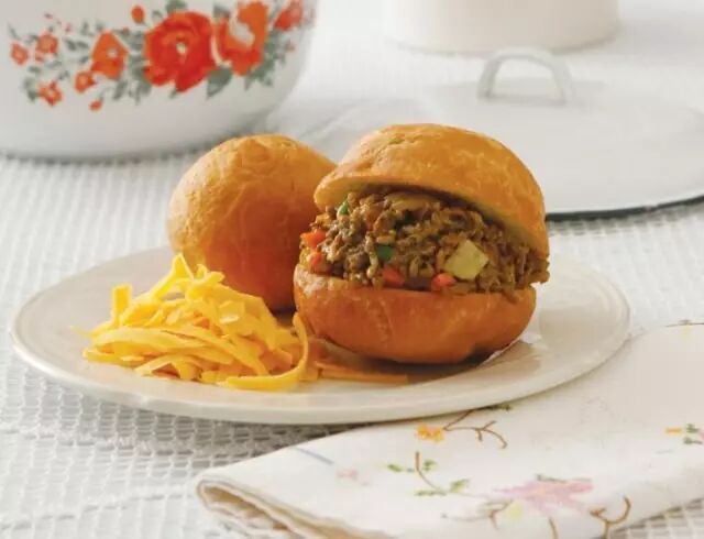 如果你喜欢更丰富的口感的话,不如去南非瞧一瞧他们对于油炸面团的改良。Vetkoek是南非的一种街头小吃,其实就是把炸面团切开塞进甜口或咸口的馅儿,你可以选择夹奶油或蜂蜜,也可以选择夹碎牛肉或咖喱等,看上去有点像迷你版的汉堡。