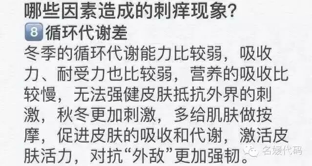 原因:皮肤缺水,里面含透明质酸原液把皮肤牢牢锁定在基底层,所以表皮会干,痒,不舒服。