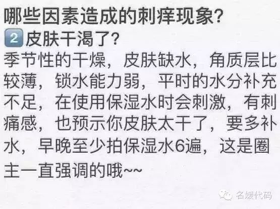 ①“干敏”——干敏的症状是敷面膜。会刺痛,用水乳会刺痛。甚至出现痒的症状,这不代表产品有问题,只能说您太缺水了,解决方案,持续敷三天面膜,然后隔天再敷一次,一个星期会有所缓解。
