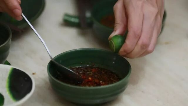 是用小青柠挤出的酸橘汁兑秘制豉油,